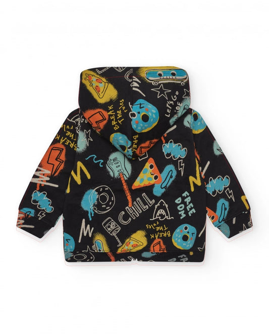 Giacca per bambino nero con stampa e cappuccio Chicco