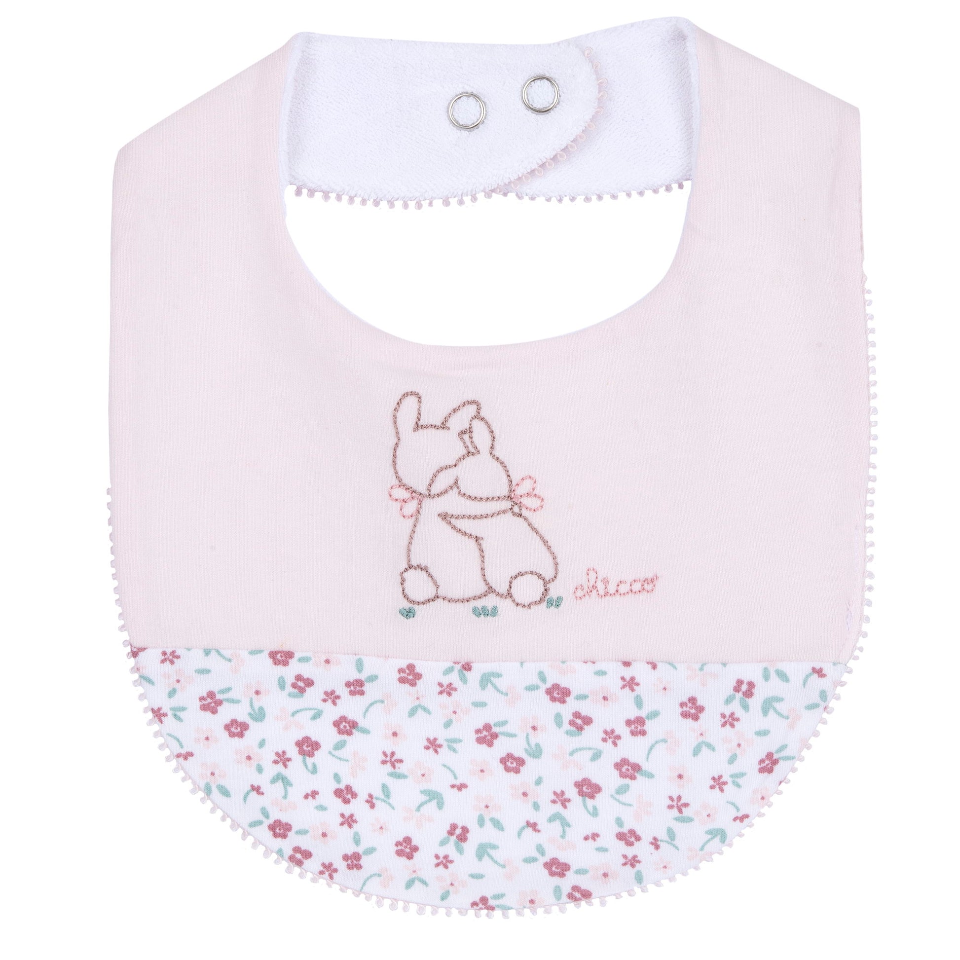 Bavaglio per neonata rosa con tenero dettaglio,chiusura a clip
