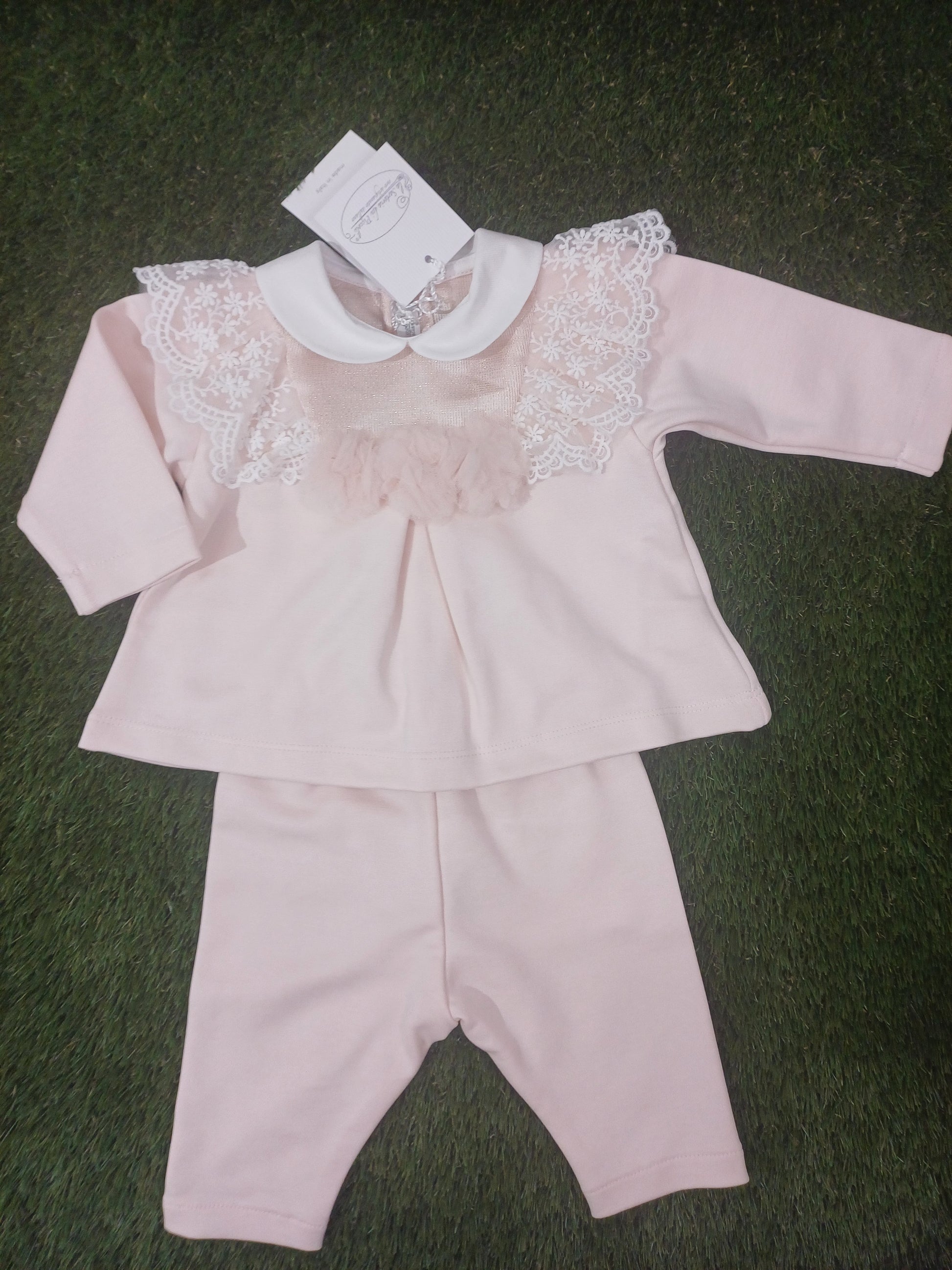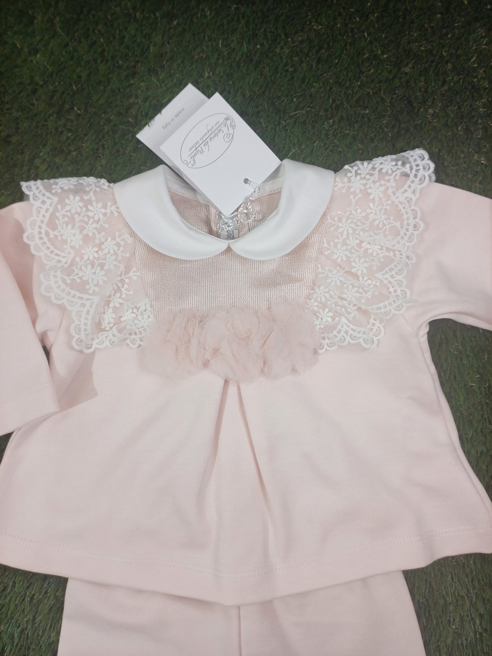Clinico due pezzi per neonata con decorazione in pizzo e dettagli rose in tulle