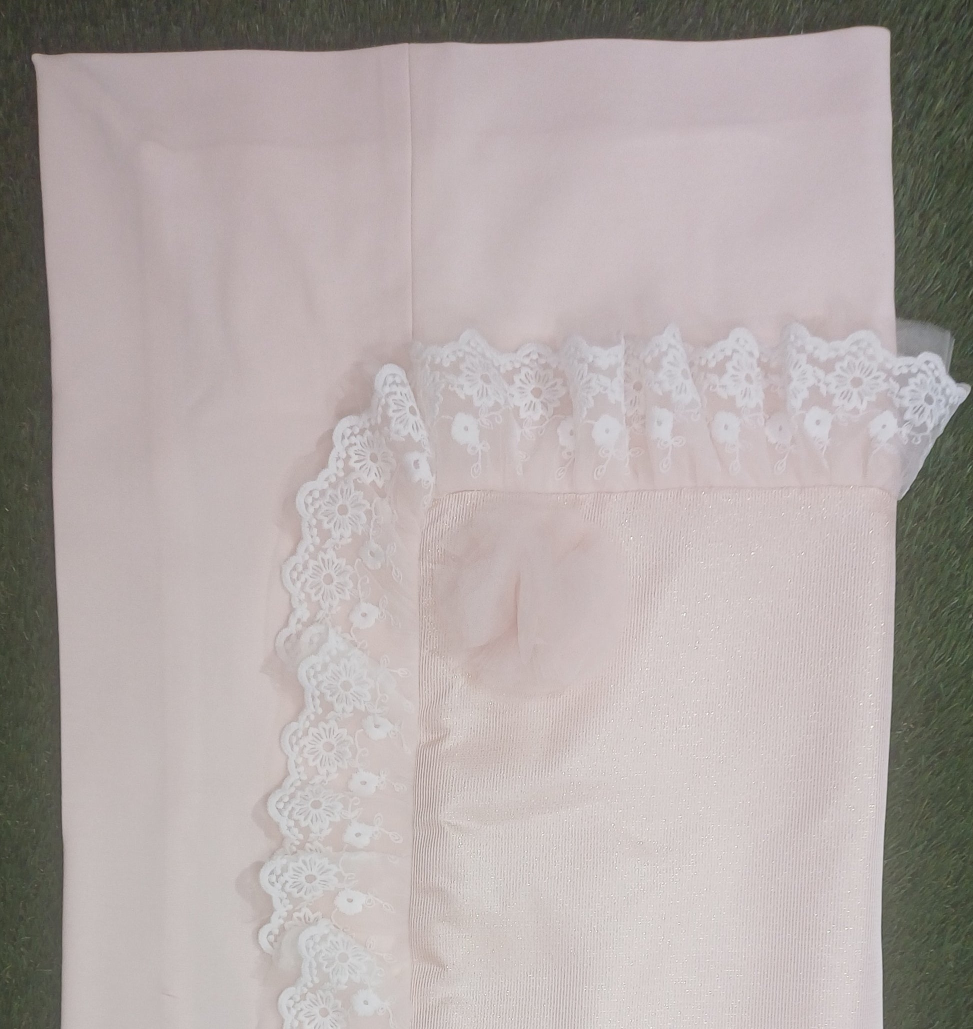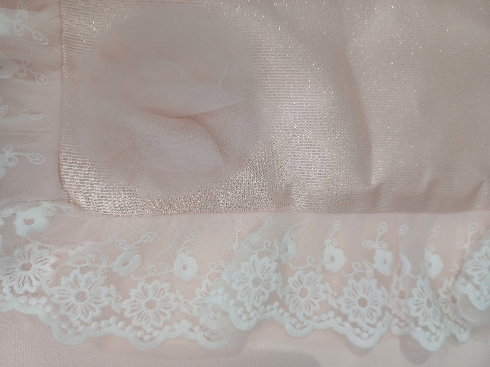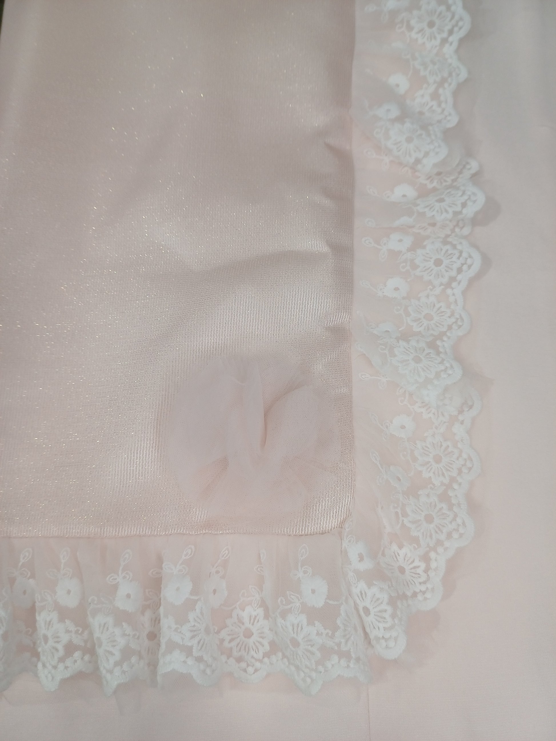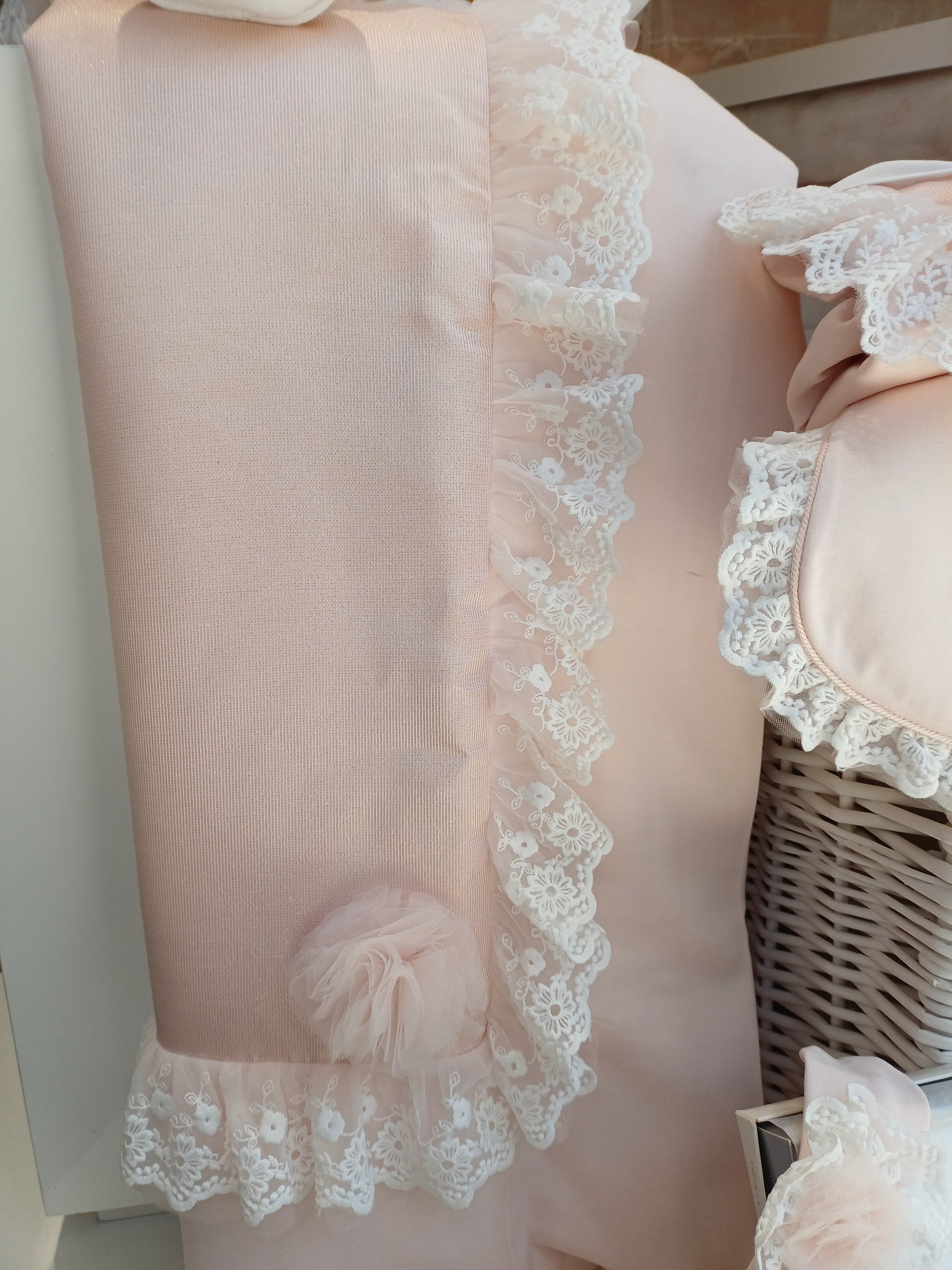 Bellissima copertina per neonata rosa con filo lurex oro,sfoderabile con dettaglio pizzo in rilievo e ciuffi di tulle
