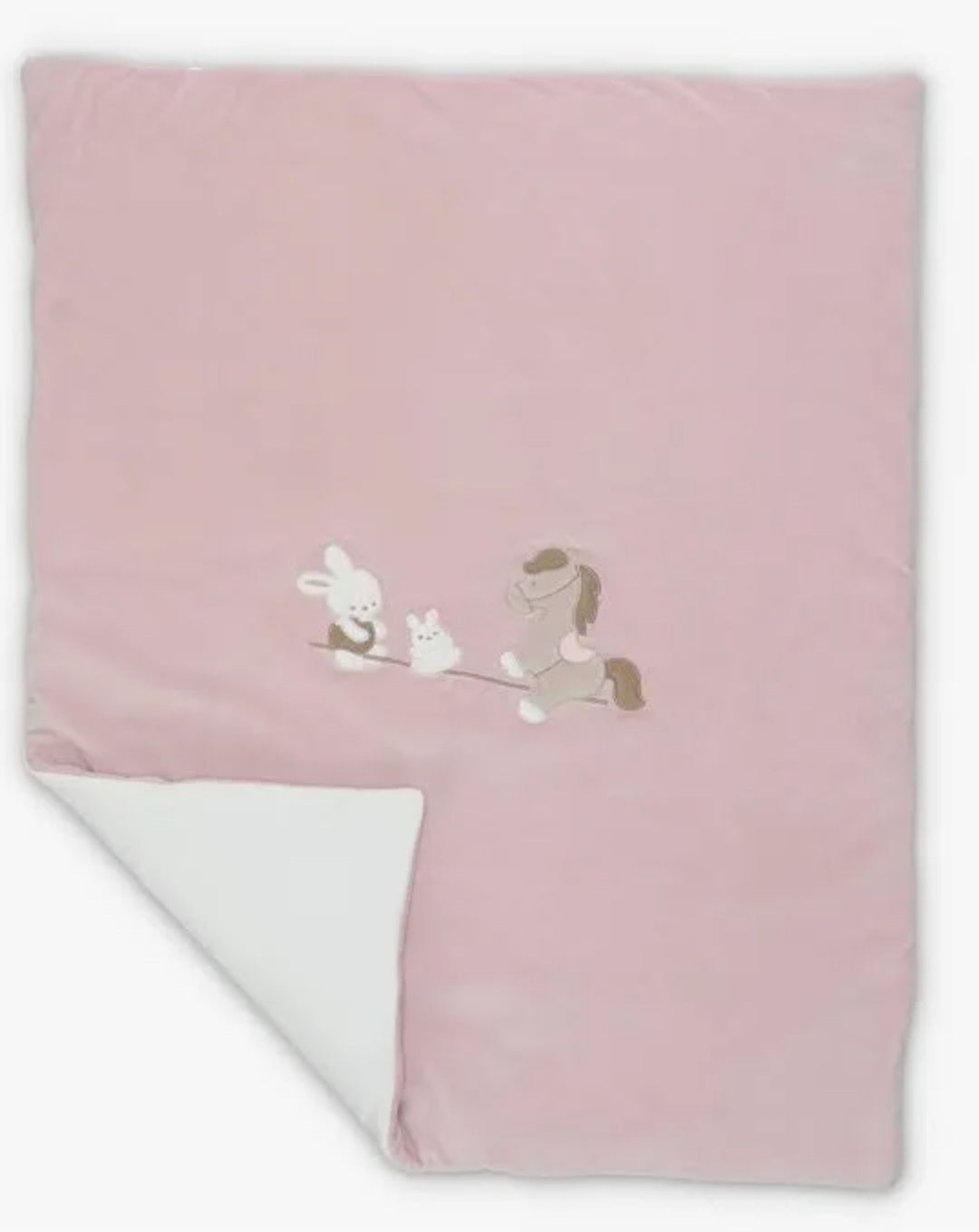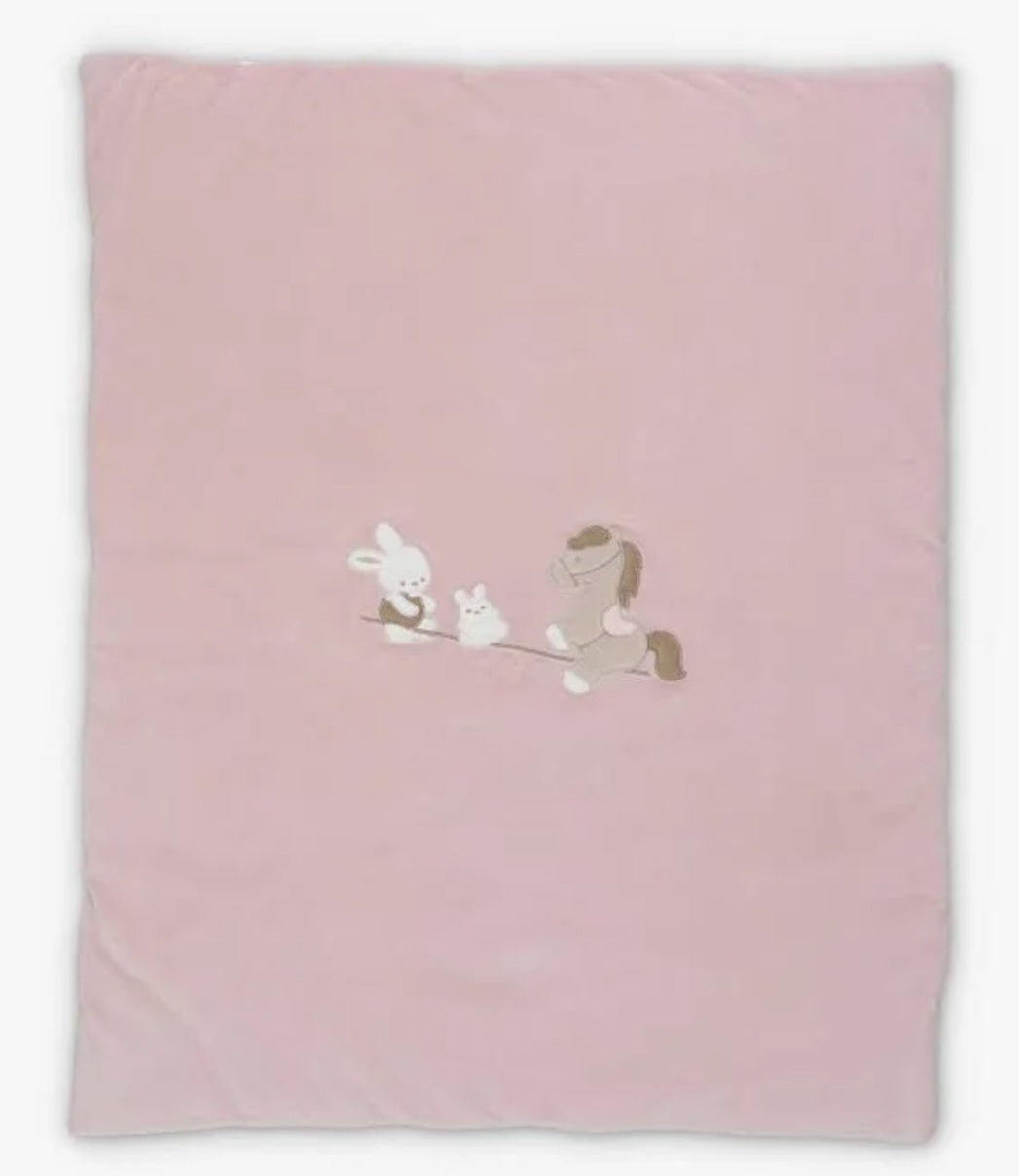 Copertina in ciniglia soft per neonata rosa antico con tenera applicazione