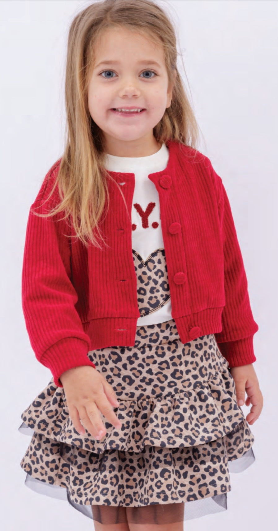 Gonna animalier per bambina vita elastica a balze con tulle nero