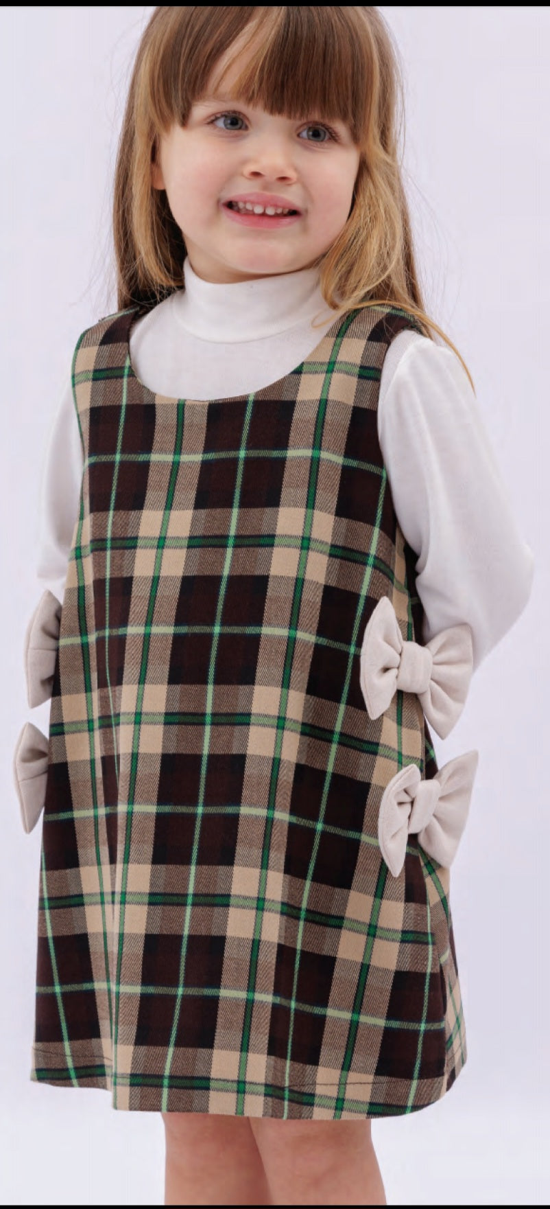 Vestina modello scamiciato a quadri verde con dettaglio fiocchi in velluto besch laterali lupetto incorporato