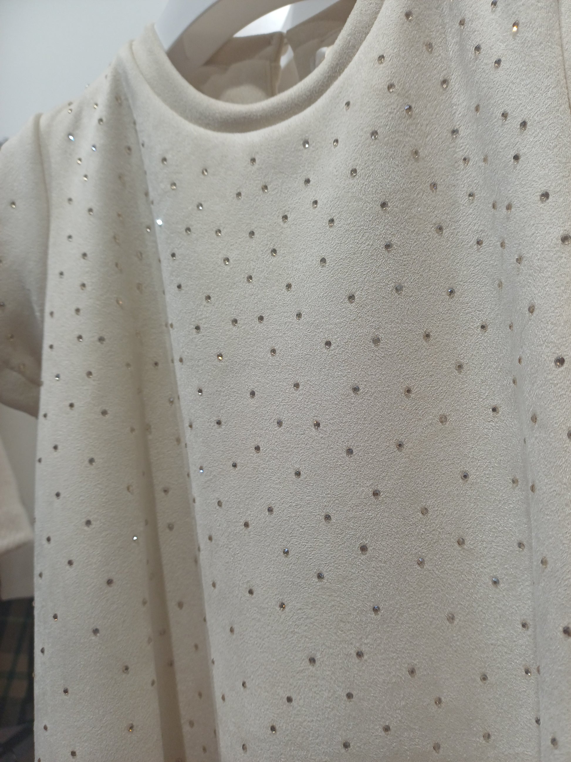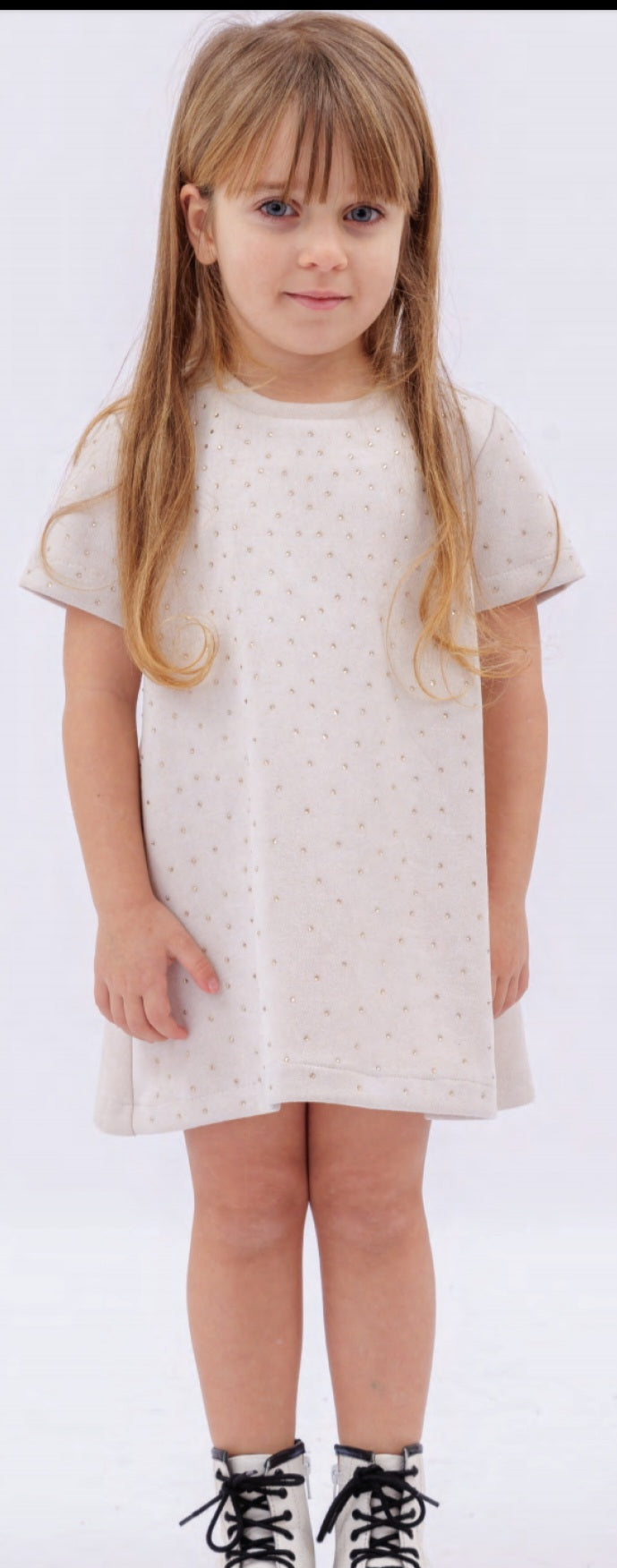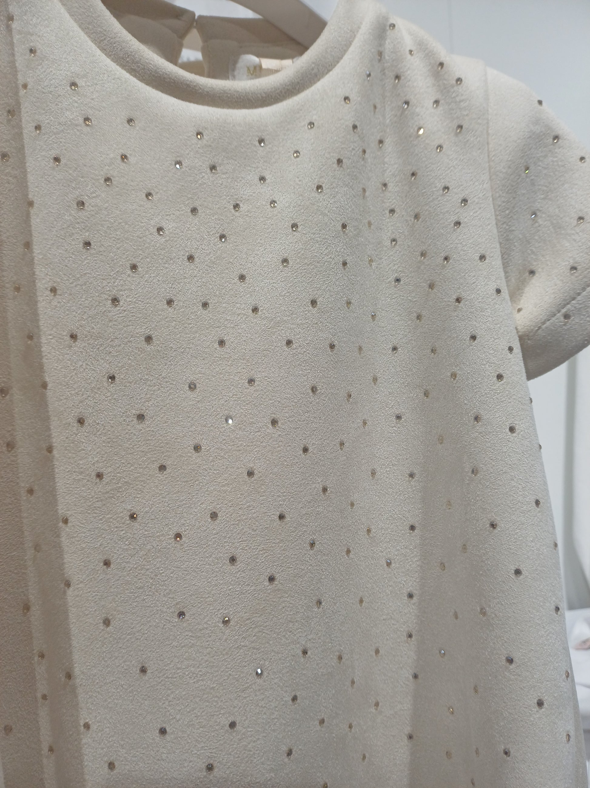 Vestito per bambina colore burro panna in velluto con vezzose punti luce